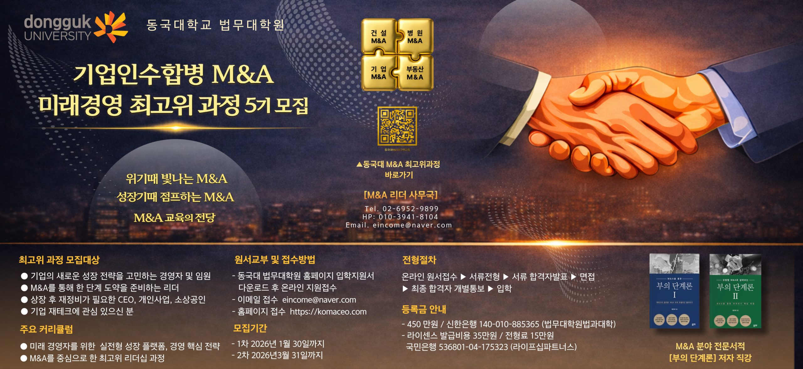 상기 본인은 ‘동국대학교 법무대학원 기업인수 합병(M&A) & 미래경영리더십 최고위과정’ 을 이수하고자 소정의 서류를 갖추어 지원합니다.